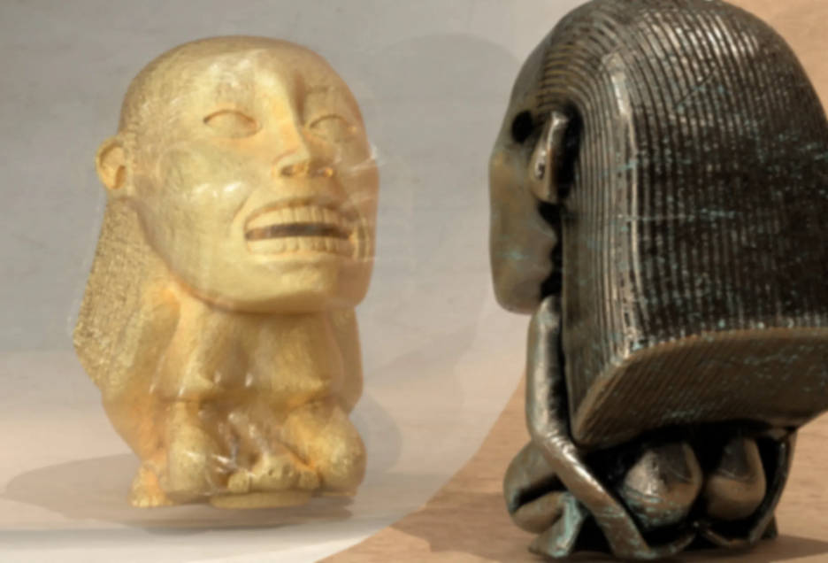 3D digital model, cast gold, silver, copper, and bronze